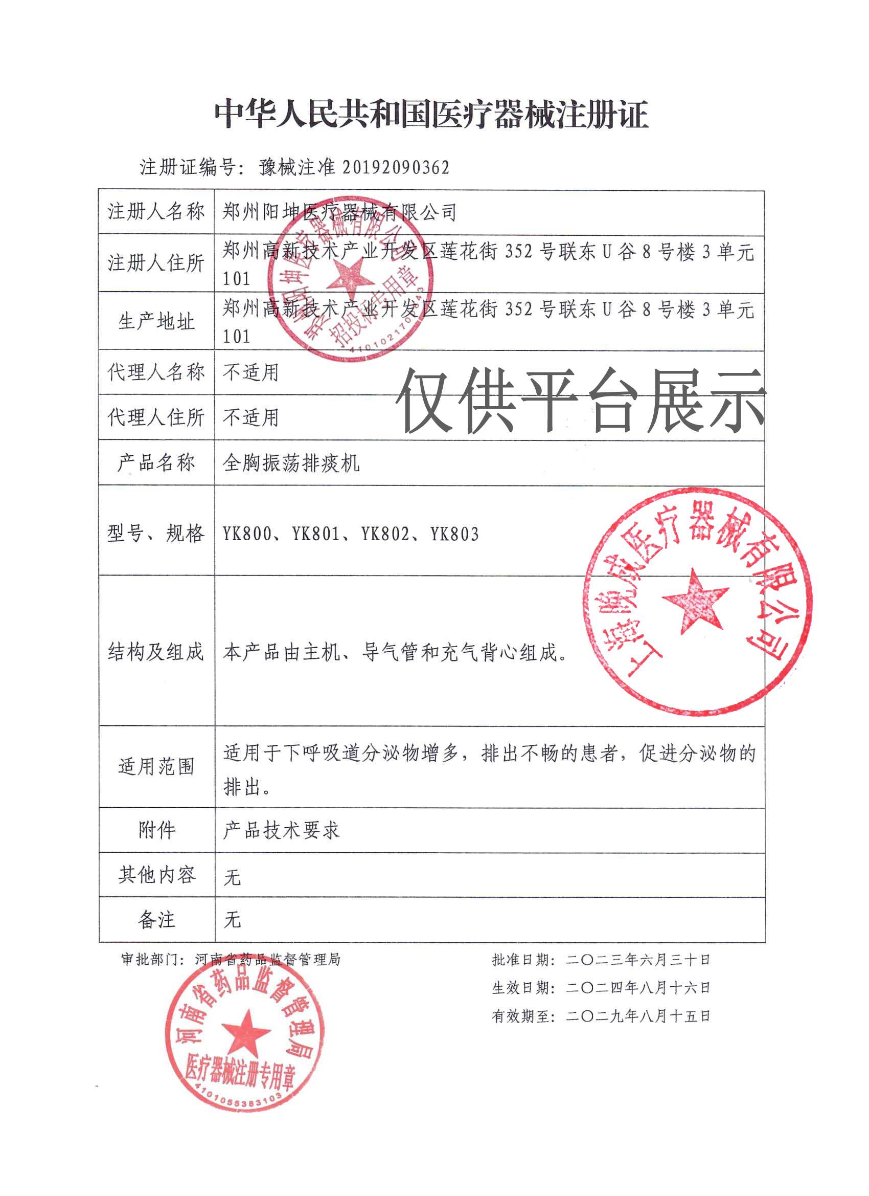 | 產(chǎn)品名稱 : | 陽坤全胸振蕩排痰機YK802 成人兒童背心式排痰 |